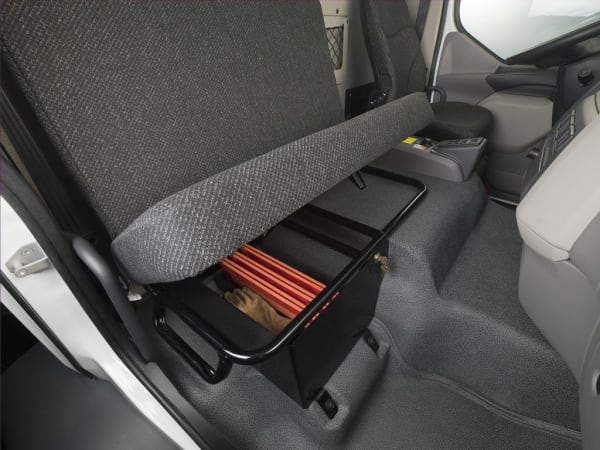A lockable compartment under the bench seat offers additional secure storage for valuables, extra tools, and equipment.