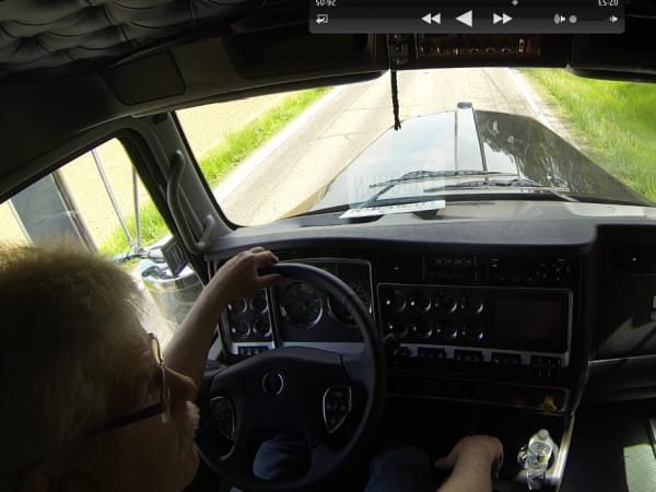 The view from the cab. That great big hood still holds a great attraction for many drivers. Photo by Jim Park