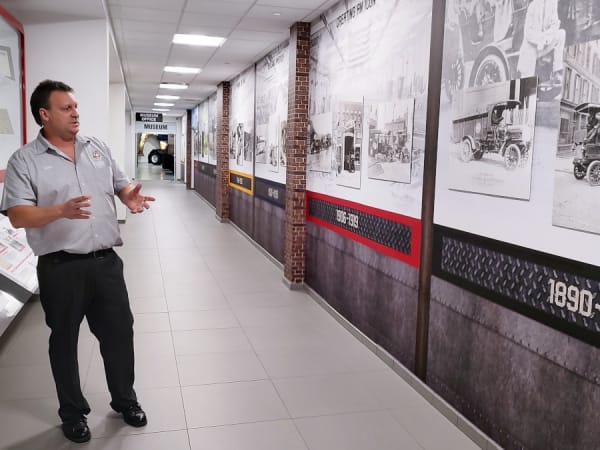 Doug Maney, Mack Trucks Historical Museum curator, provides some interesting stories and facts during a tour.