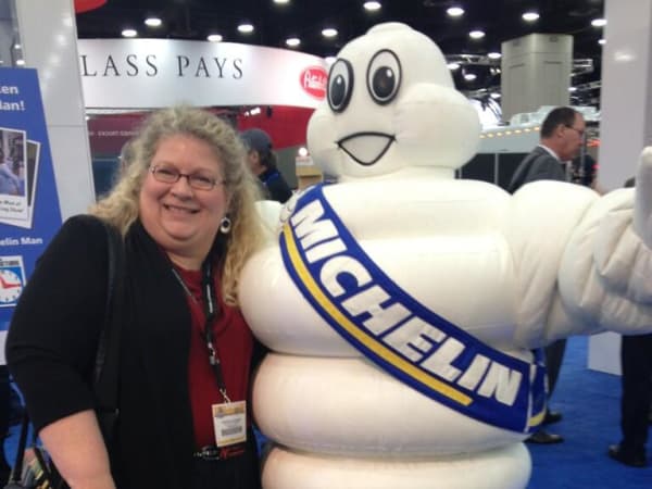 Editor in chief Deborah Lockridge with the Michelin Man at MATS.