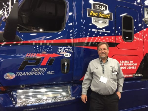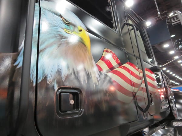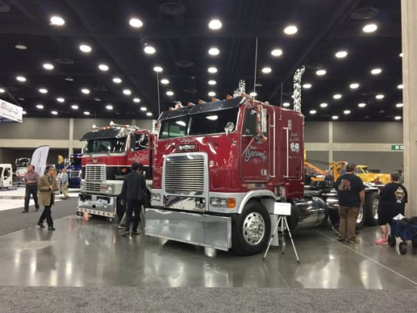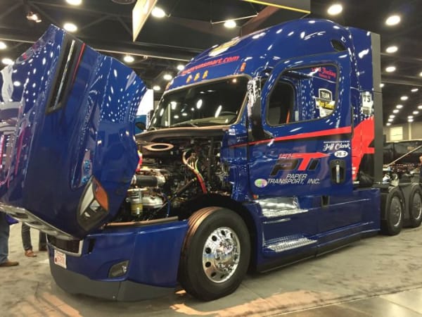 Freightliner this year was represented by a pair of Team Run Smart owner-operators. Photo: Deborah Lockridge