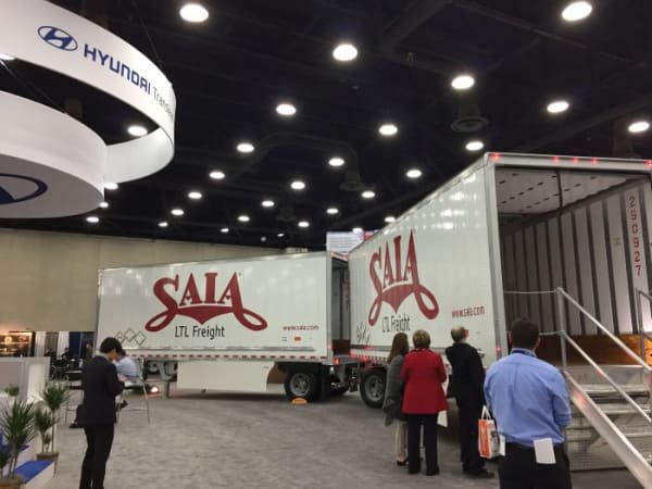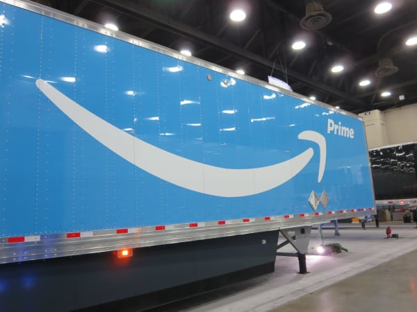 At one corner of the Hyundai Translead booth, Amazon.com was advertising for small fleets to do business with. Photo: Deborah Lockridge.