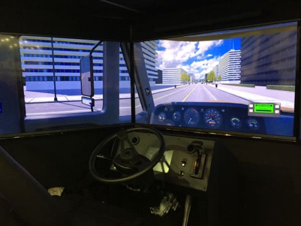 Wabco offered visitors an interactive simulation of its safety tech such as lane departure warning and collision avoidance. Photo: Deborah Lockridge