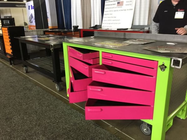 One work bench maker in the West Wing had an eye-catching work bench that might just prompt some trucker's daughter to think about becoming a technician when she grows up. Photo: Deborah Lockridge
