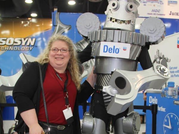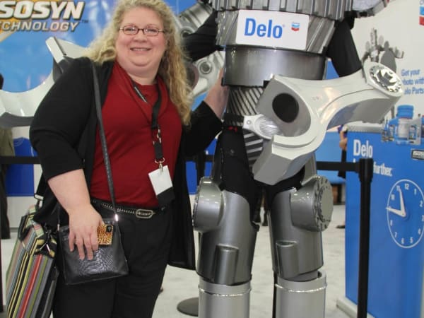 HDT Editor in Chief Deborah Lockridge poses with the Delo Man.