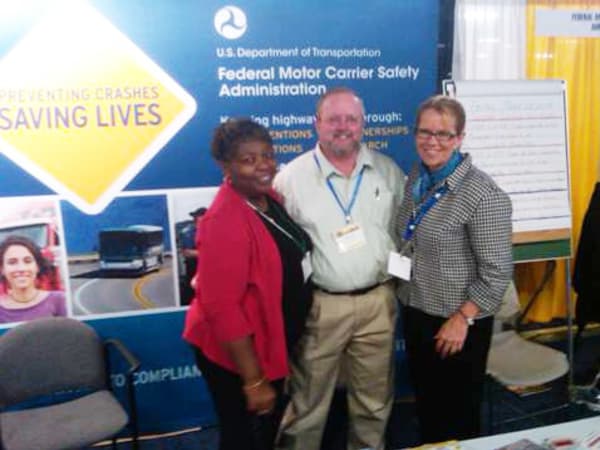 Administrator Anne Ferro joins Jeanette Minor, Safety Investigator, and Terry Cook, Hazardous Materials Specialist, of the Kentucky Division, providing safety information at FMCSA’s booth.