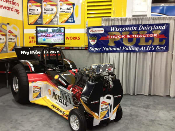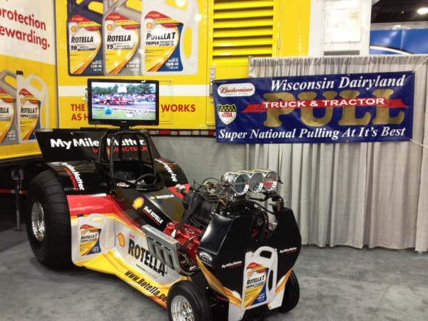 Shell had at its booth the Koester Racing puller, and in person, Larry Koester, who competes in the National Tractor Pullers Association. Shell's SuperRigs this year will be held in conjunction with the tractor pull championships.