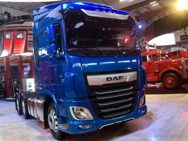 Netherlands-based DAF Trucks is a sister company of both Peterbilt and Kenworth-- whose booth next door boasted a vintage long-nose KW.