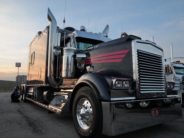 The sign on the hood says 800 hp CAT. Can't imagine this owner-operator looses much sleep over fuel economy.