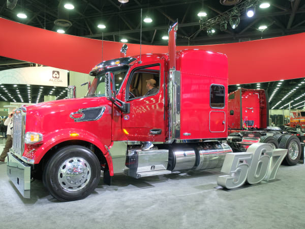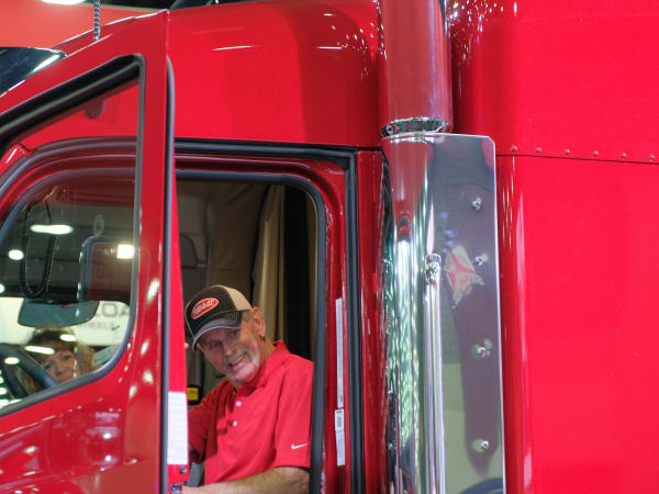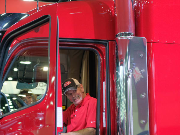 Peterbilt SuperFan Rick McClerkin aboard his brand new Peterbilt Model 567, the one millionth truck produced by Peterbilt Motors.