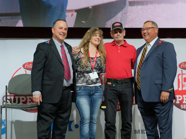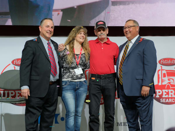 Peterbilt General Manager Kyle Quinn, left, Rick McClerkin with his fianceé Kathy Cantaloube, and Robert Woodall, assistant general manager for Sales and Marketing at Peterbilt.