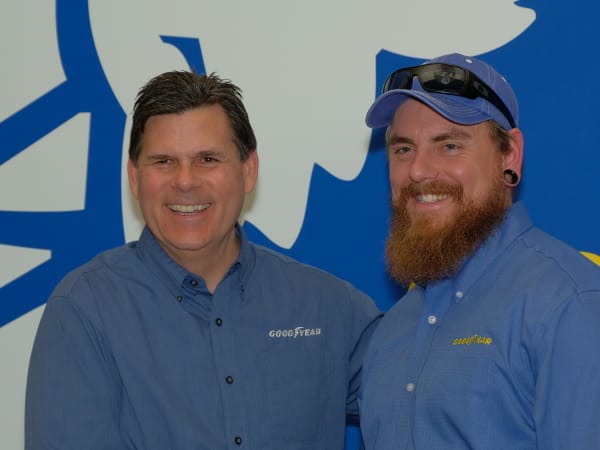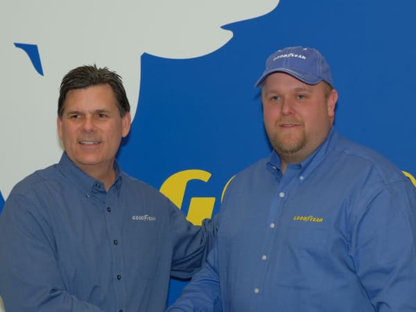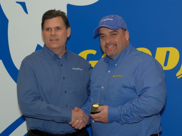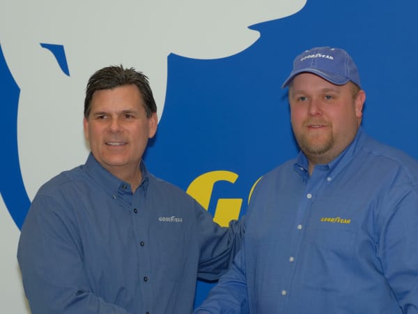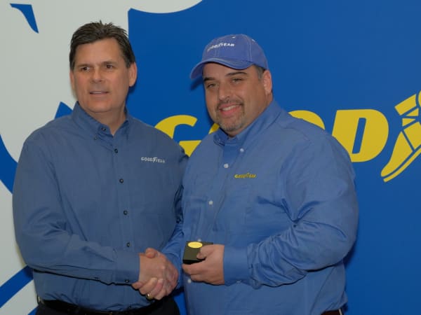 Goodyear Highway Hero runner-up, Brian Bucenell of Richmond, Va. (right), with Goodyear marketing director, Gary Medalis (left).