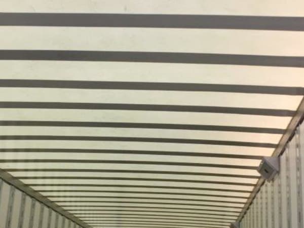 A key feature of the Strick auto-parts van is this translucent fiberglass roof that has the support bows on the exterior to prevent forklifts from ripping the roof.