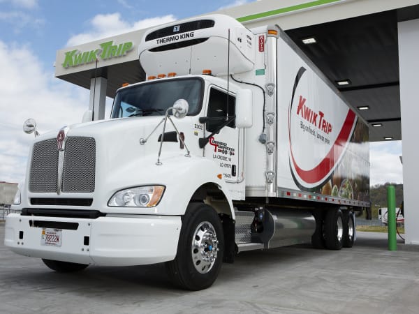 Kwik Trip, a convenience store and fuel chain with more than 400 locations in three states, is promoting liquefied and compressed natural gas as fuel source in Wisconsin, Minnesota, Iowa and other areas. In addition to moving forward with CNG at its stations, it also currently has 20 natural gas vehicles in its own fleet, with more coming. Among Kwik Trip's fleet are a Kenworth T440 LNG tractor and two Kenworth T440s powered by CNG.
