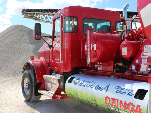 Ozinga Ready Mix Concrete Inc. replaced aging mixer trucks working from its Chinatown Plant near downtown Chicago with 13 compressed natural gas-powered Kenworth W900S mixers. Each is equipped with the 8.9-liter Cummins Westport ISL G engine, 6-speed Allison 4500RDS automatic transmission and the McNeilus Bridgemaster mixer body. The engines are 5-1/2 decibels quieter than comparable diesel-powered 2007 Cummins engines at peak torque and load and nearly 10 decibels quieter at idle. Ozinga customers have commented about the quietness. And that has significant benefits when placing concrete in residential neighborhoods and at public projects.