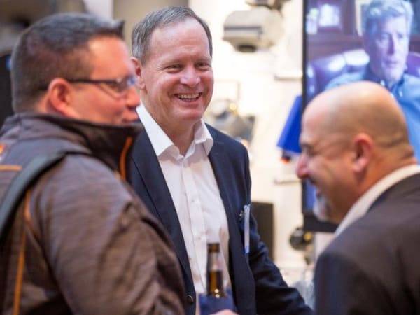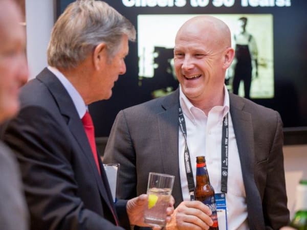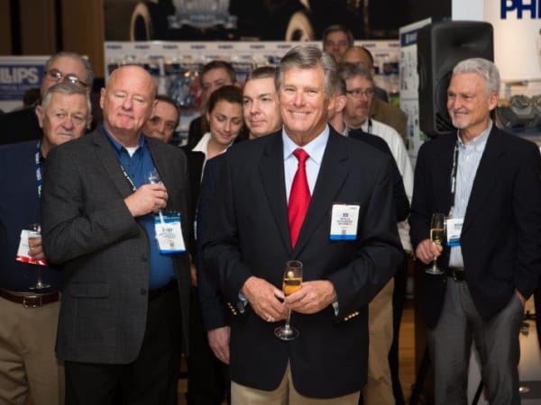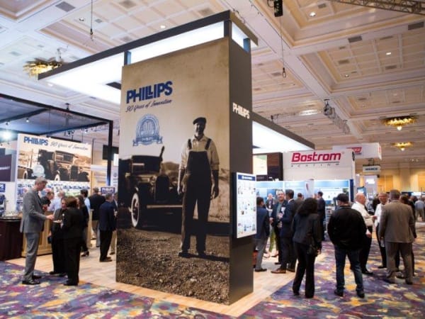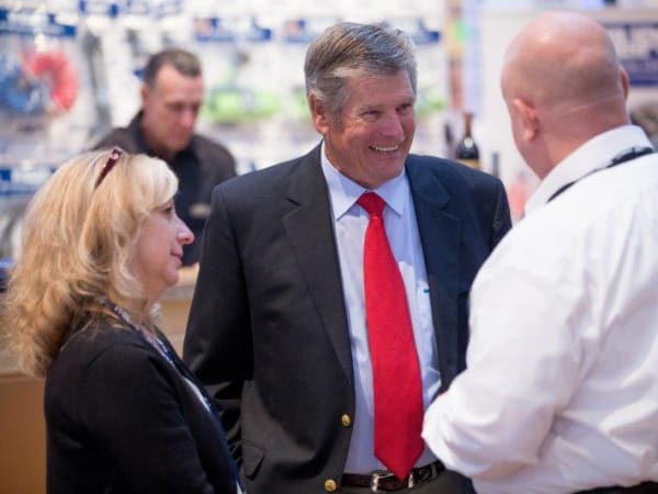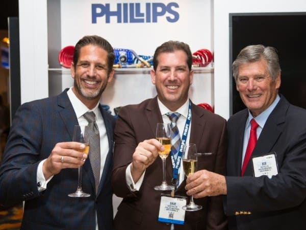Bob Phillips (center), chairman of Phillips Industries, celebrating the company's 90th anniversary at Heavy Duty Aftermarket Week.