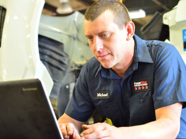 Four Star Freightliner diesel technicians are 100% system certified. Pictured here is diesel technician Michael Earle who is based in the dealership’s Montgomery, Ala., location.