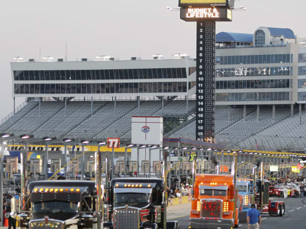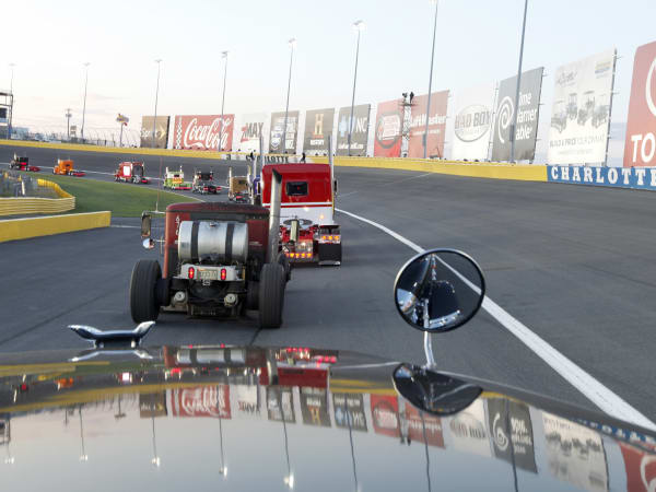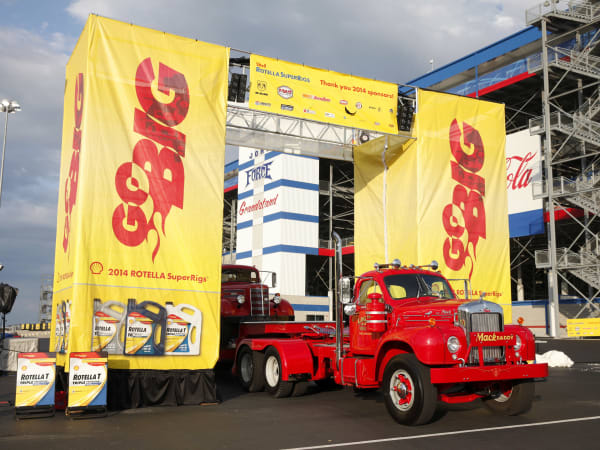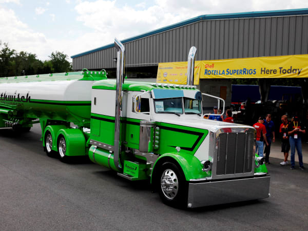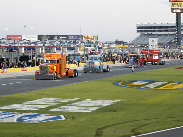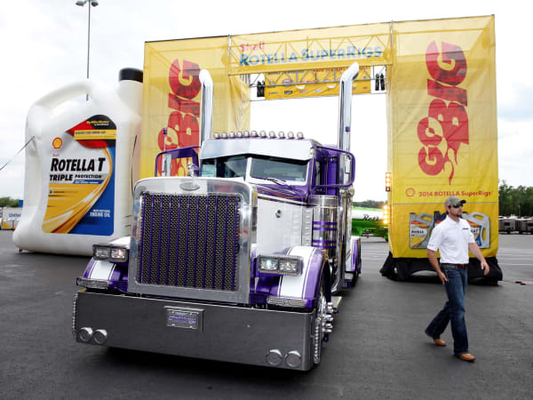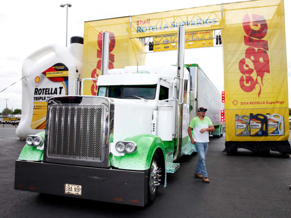 The truck parade around Charlotte Motor Speedway, prior to the NASCAR Camping World Truck Series race, during the 32nd Annual Shell Rotella SuperRigs competition. Photo: Shell Lubricants/Conrad Schmidt