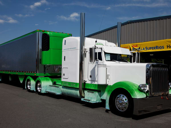 Bill Rethwisch of Tomah, Wis. captured Best of Show honors with his green and white 2013 Peterbilt 389, during the 32nd Annual Shell Rotella SuperRigs competition. Photo: Shell Lubricants/Conrad Schmidt