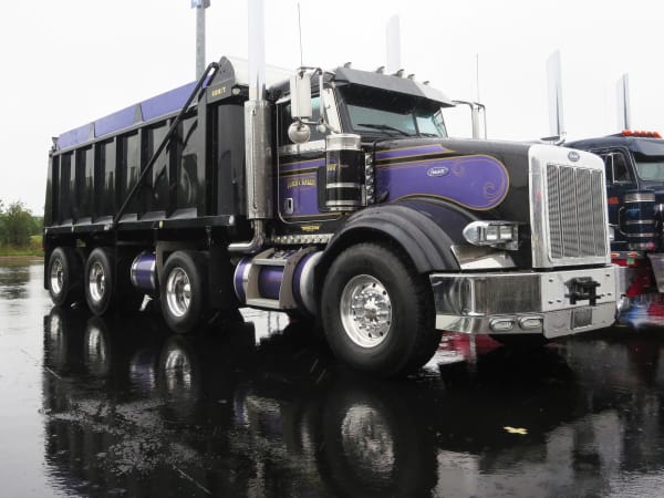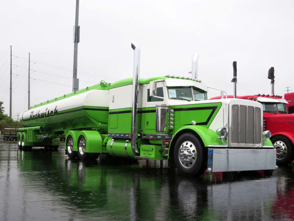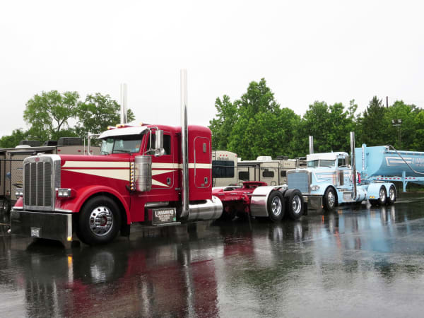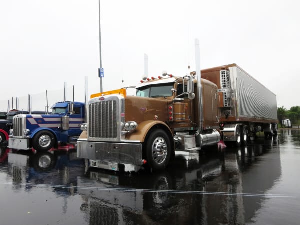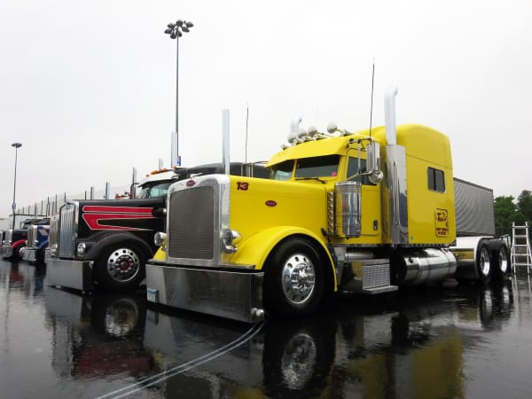 Trucks still gleamed in the rain on Day 1 of SuperRigs. Photo: Deborah Lockridge