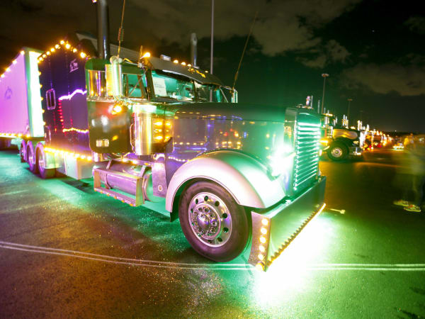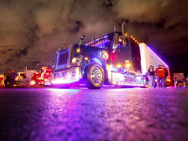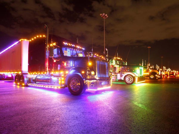 The nighttime truck parade during the 32nd Annual Shell SuperRigs competition. Credit: Shell Lubricants/Conrad Schmidt