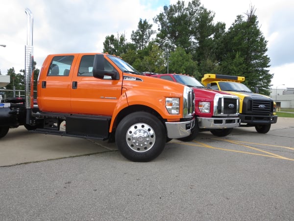 Until June, the F-650 and F-750 were assembled at a Navistar plant in Mexico. Ford powertrain components include Power Stroke V-8 diesel and Triton gasoline V-10 with TorqShift 6-speed automatic transmission.