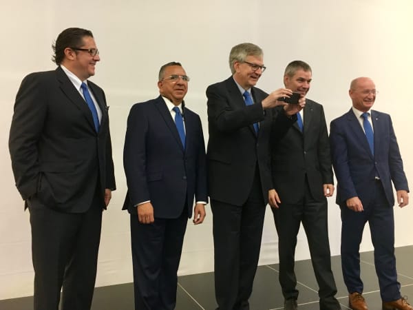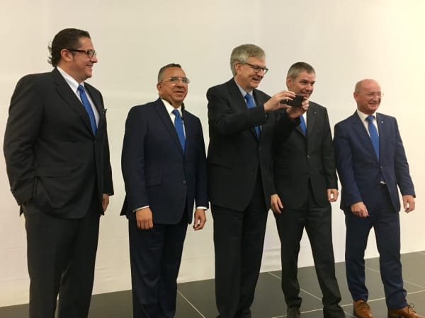 Daimler Trucks’ global chief Martin Daum turns tables on the Mexican truck press corps by insisting on taking their photo. Photo: David Cullen