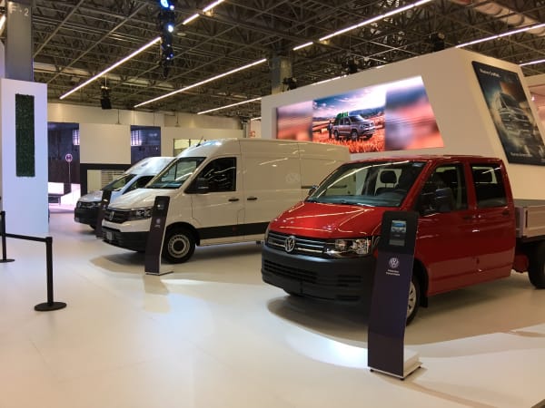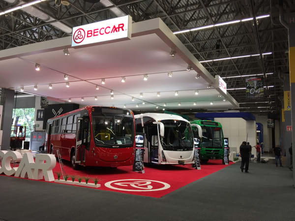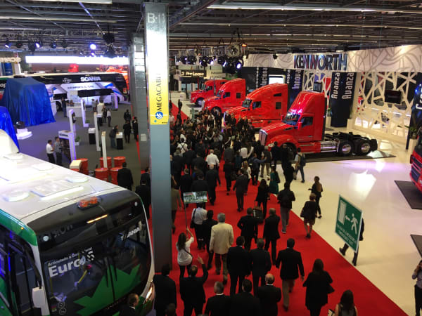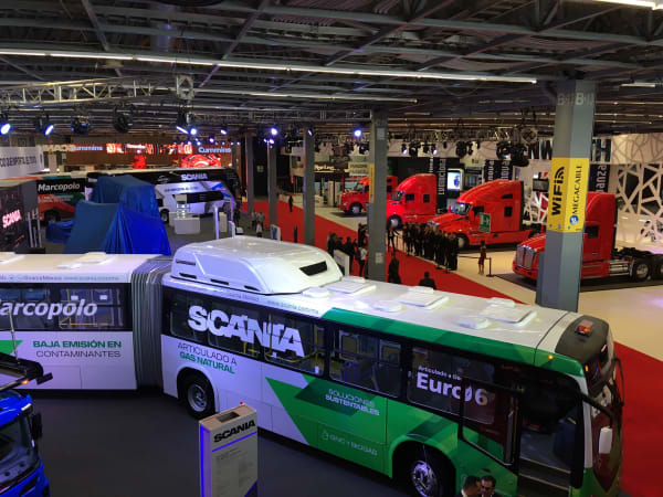 Transport buses from European brands like Scania are part of this commercial vehicle show.