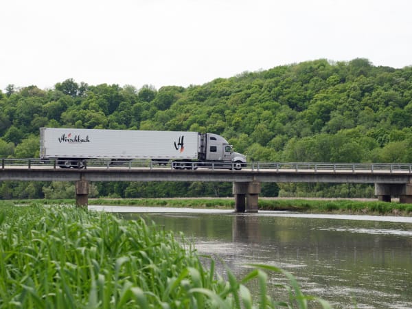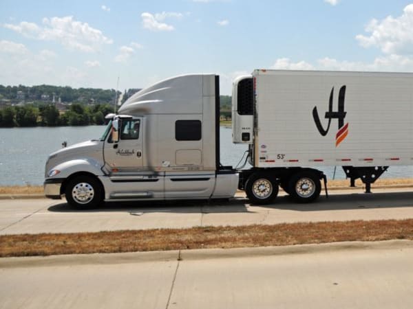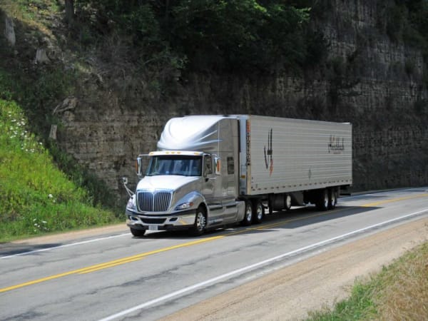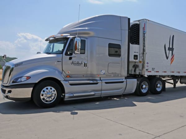 Trucks are governed at 61 mph, because better fuel economy comes with slower highway speeds. Photo courtesy Hirschbach