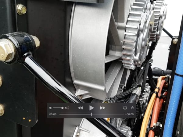 Located behind the cab are six compressed hydrogen tanks containing 5 kg of hydrogen each at 5,000 psi. Tanks are tested for safety and regulated the same way compressed natural gas fuel tanks are.