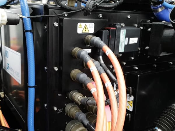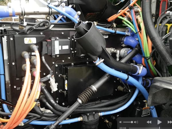 The truck produces no emissions other than a small column of steam when the hydrogen fuel cell stack is charging the batteries.
