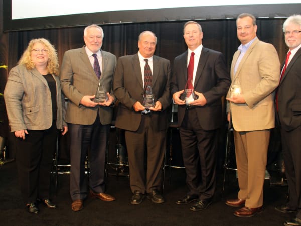 HDT's 2015 Truck Fleet Innovators received their awards during the MATS Fleet Forum. From left, HDT's Deborah Lockridge, Steve Rush, Rich DeBoer, Braxton Vick, John Elliott and HDT's Jim Park. Photo: Evan Lockridge