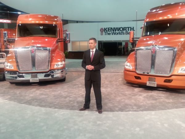 Kevin Barney, Kenworth's chief engineer, shows off the T680 76-inch Mid-Roof sleeper. Photo: Stephane Babcock