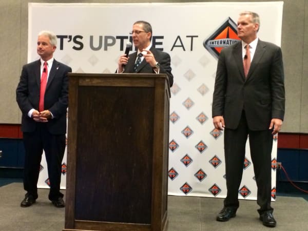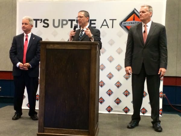 Navistar executives fielding questions at news conference that focused on International Trucks' multi-pronged approach to ensuring "uptime." Photo: Dave Cullen
