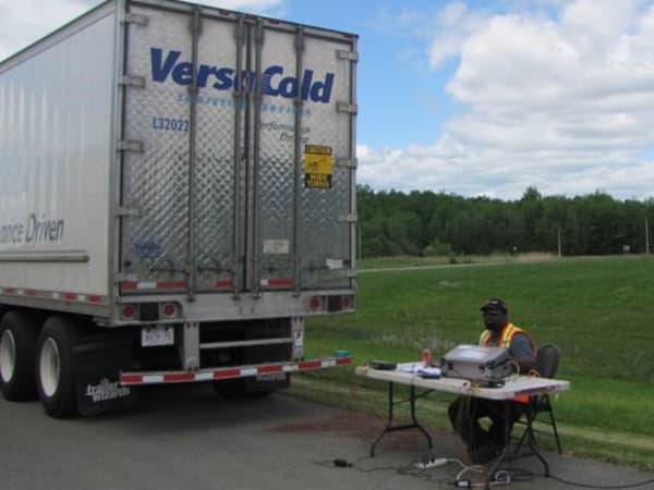 Adime Bonsi, a PIT Group researcher, monitors cold- air circulation to develop better trailers specs and loading strategies for temperature-sensitive food transportation.