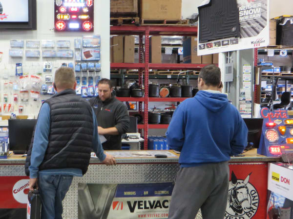 The distributorship still has a traditional parts counter where customers can talked to experience parts countermen.