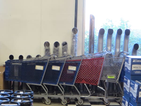 Taking a cue from other retail establishments, Action has shopping carts for its customers to use as they browse the parts displays.