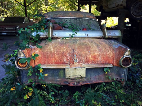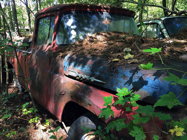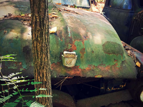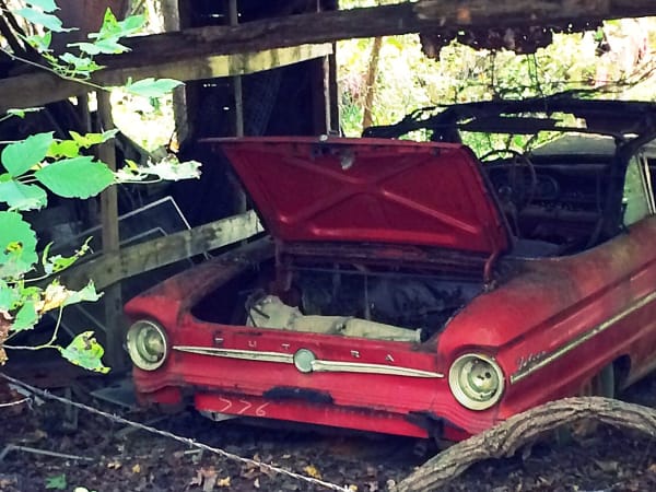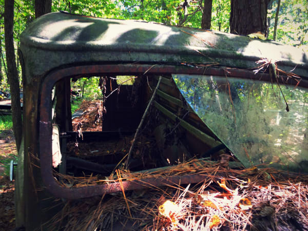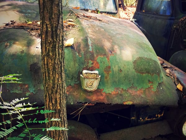 An old Ford in the trees. Photo: Christina Hamner
