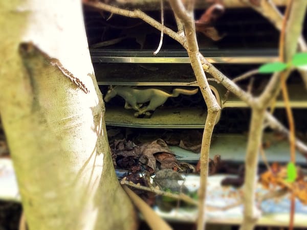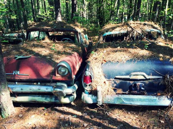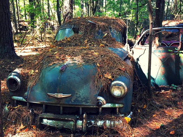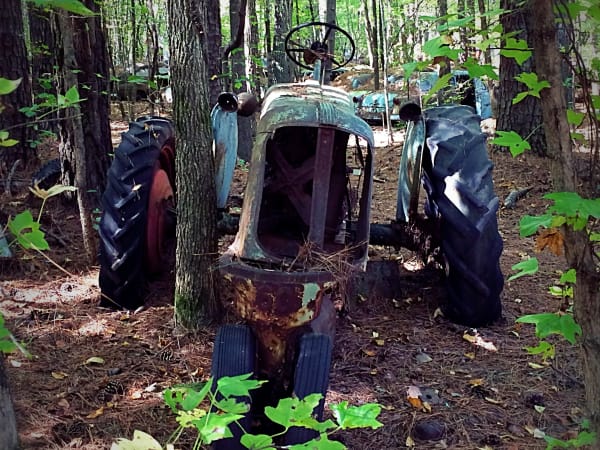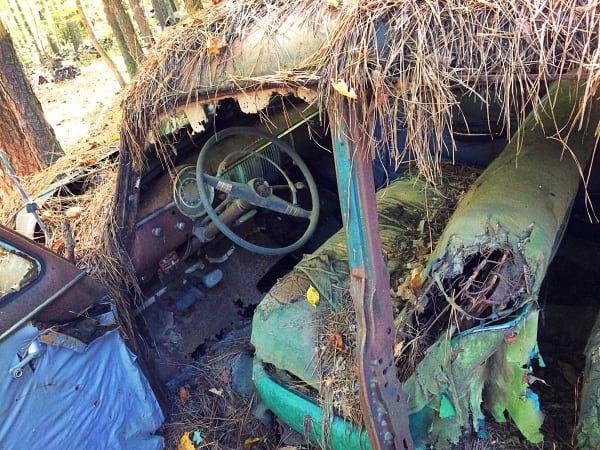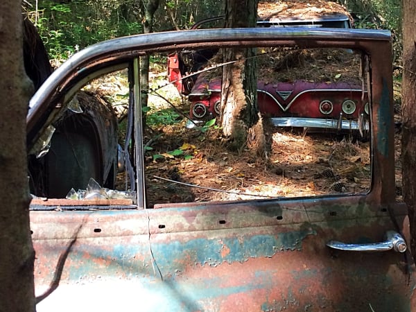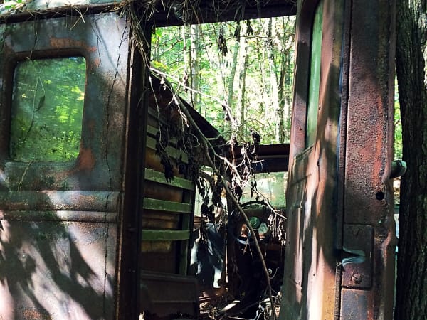Many vehicles have been in the woods so long trees have grown through their bodies. Photo: Christina Hamner