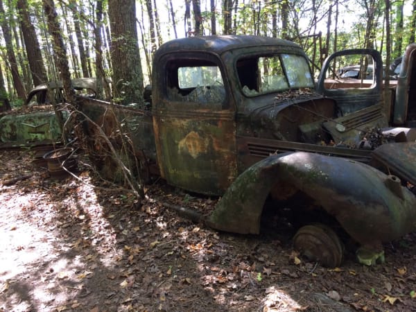 Old trucks are everywhere in the woods at Old Car City. Photo: Christina Hamner