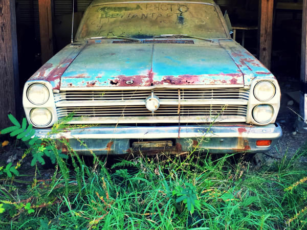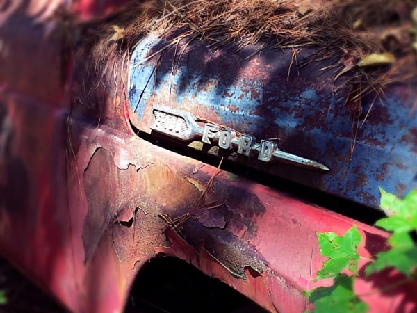 This old Ford lost its bumper. Photo: Christina Hamner