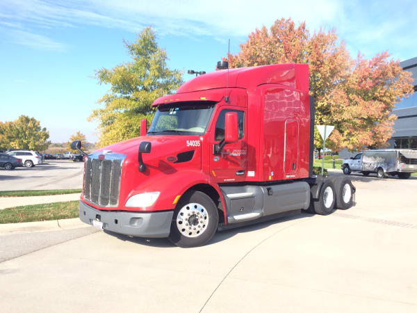 A fuel-economy-spec'd Peterbilt Model 579 away US Xpress headquarters.