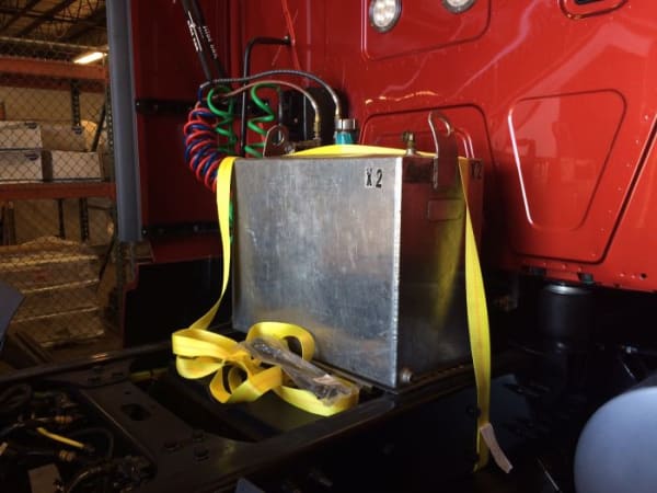 Each truck is fitted with a 32-gallon fuel tank mounted behind the cab for the 52 mile test run.