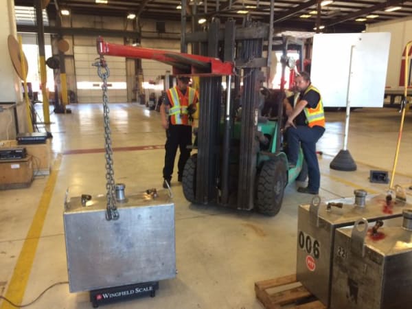 Once the truck returns, hit group engineers remove it from the back of the cab, and place it on scales to be weighed.