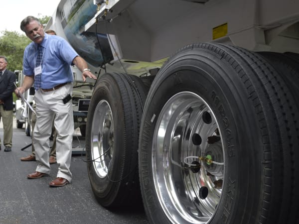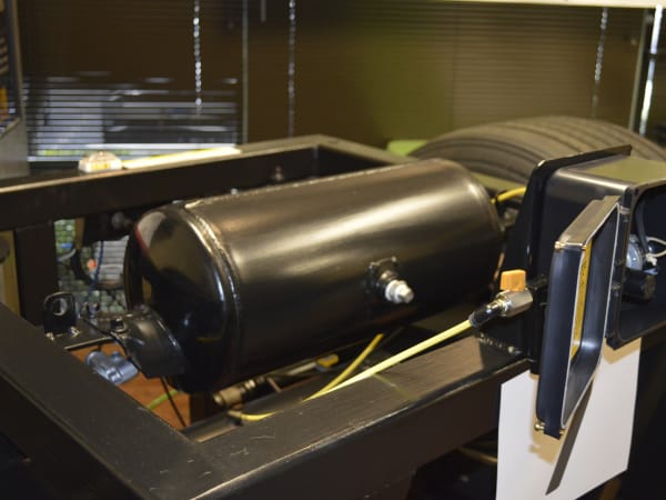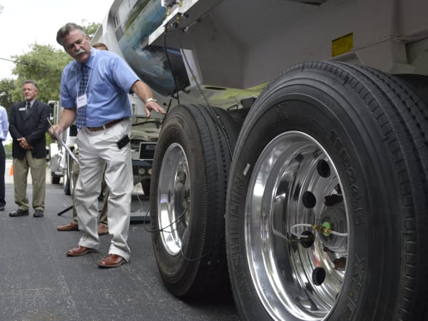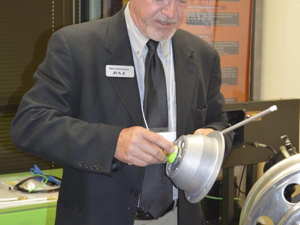 Mike Niemeyer of PSI demonstrated how the tire inflation system works by showing how all of the pieces of the system go together.