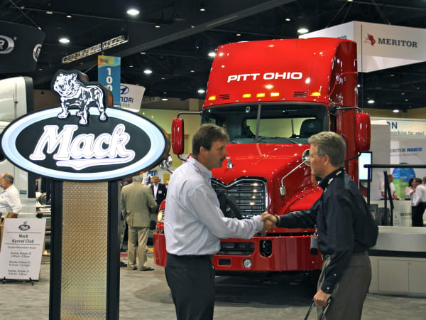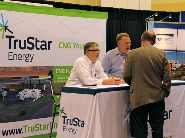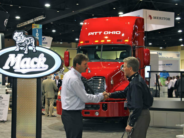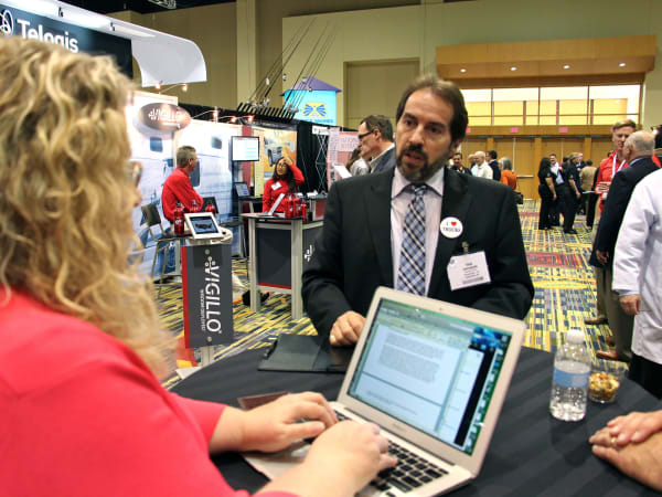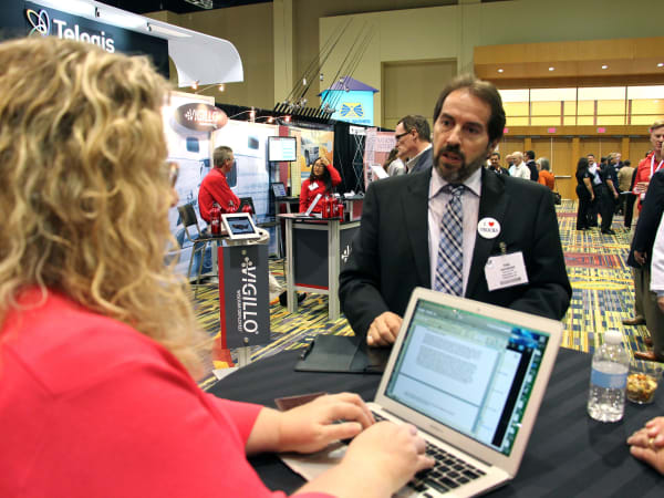 HDT Editor in Chief Deborah Lockridge conducting an interview on the exhibit hall show floor