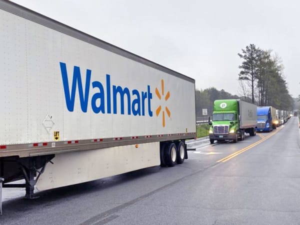Trucks lined up outside distribution centers, trying to meet the high demand for everything from meat to toilet paper.