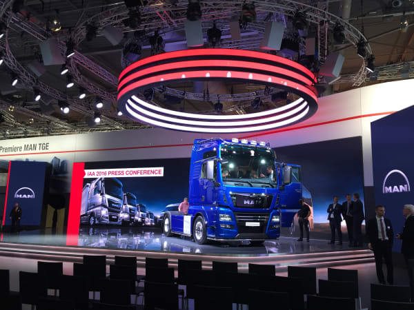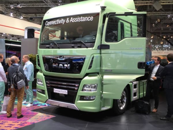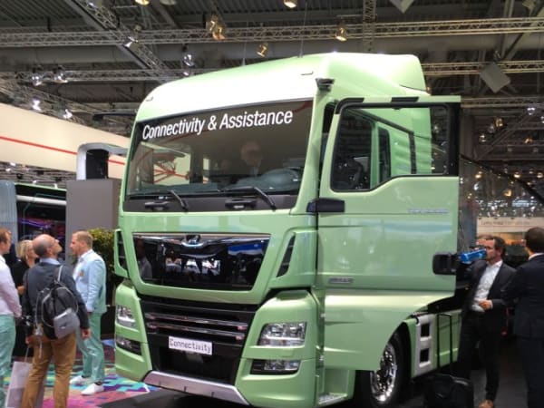 Connectivity was on the lips of all the heavy-duty OEMs at IAA; here MAN shows a ‘connectivity’ concept truck. Photo: David Moniz