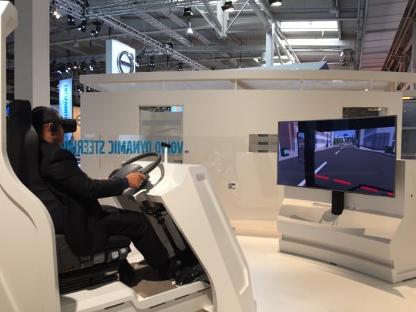 Several displays used virtual reality to give show-goers a different look at their technology and products, such as this one demonstrating Volvo's steering system. Photo: Deborah Lockridge