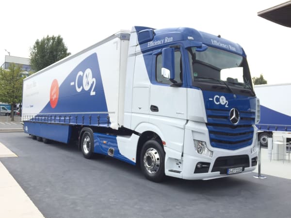 Mercedes-Benz and Germany-based trailer maker Krone have teamed up to put together a linehaul tractor-trailer they say delivers up to a 20% cut in fuel consumption compared to existing combinations. Photo: Deborah Lockridge